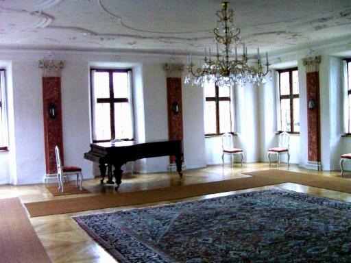 Der Festsaal des Schlosses mit seinem aufwendigen Deckenstuck.