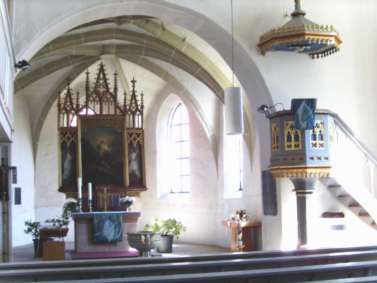 In der Kirche sind Epitaphien und Wappenschilder der Familien von Seckendorff zu sehen.